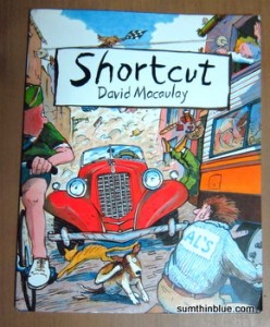 Like Black and White, Shortcut is a PoMo (postmodern) picture book — my favorite kind! — and the humorous (crazy!!!) turn of events in the book is quite entertaining. Whether you’re a five-year old or a fifty-year old, the non-linear narrative presents a whole lot of possibilities, sure to reel the reader right into the (un)story, and provide many hours of creative storytelling or debate. This was also the first time I’d seen Macaulay do full color, and the illustration style he used in this book — I’m guessing gouache, with colored pencil shading and brushpen outlines — reminds me of the illustrations I loved growing up (Learning with the Letts, and Usborne books!).