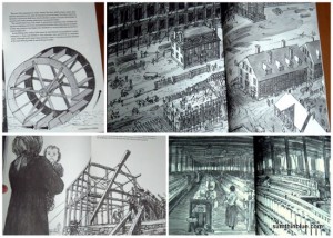 While not my favorite in the series, Mill manages to make cotton-spinning look like rocket science — I mean, I don’t think I could get more enthused about the topic than this! Also, I like how along with community life coping with the changing technology, the book also shows changing world views — like how the owners opted to have the mill weave the fabric on-site rather than using cheap cloth made from cotton picked by slaves. I also like how the book goes on to tell us what happens after: the gradual fall of the Northern textile industry over the next hundred years.
