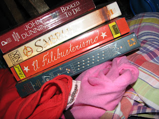 And here’s my version of packing light for my trip to the mountains: no hardcovers! Oh, and I also packed Peter Mayle’s A Dog’s Life, which I’ve already started. Hope I can make a dent in these….